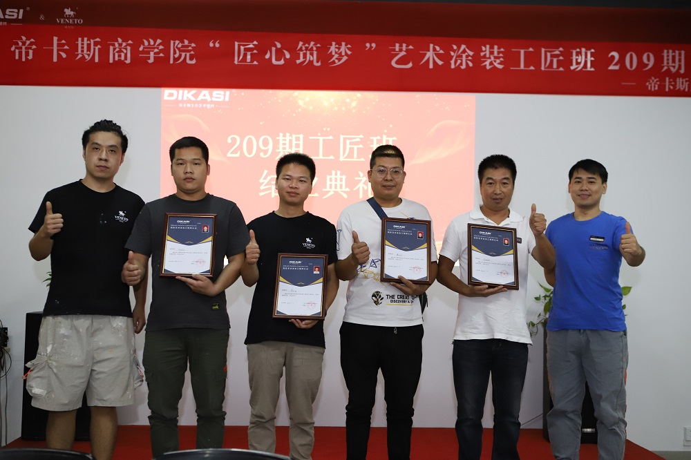 2020年8月22日,帝卡斯商學院藝術塗裝專題209期工匠班在廣東帝卡斯新材料科技有限公司內圓滿結業!