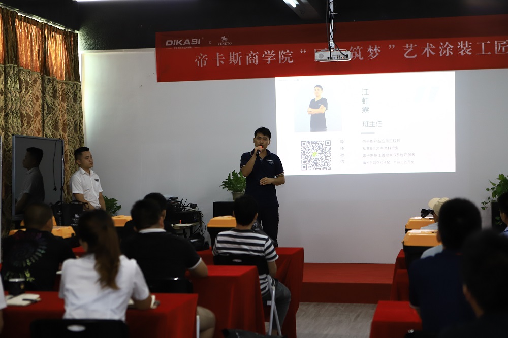 結業典禮前,學員們在培訓導師和營銷顧問們的帶領下舉行藝術塗裝論壇交流會,一起交流、探討工藝技術與藝術壁材的營銷、推廣方式等,並對學員提出的問題進行詳解。鼓勵學員,堅持積累技能和知識,要有耐心去尋找自己技術和營銷的製高點。