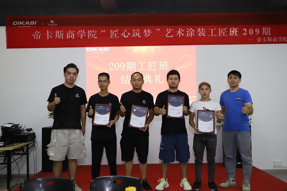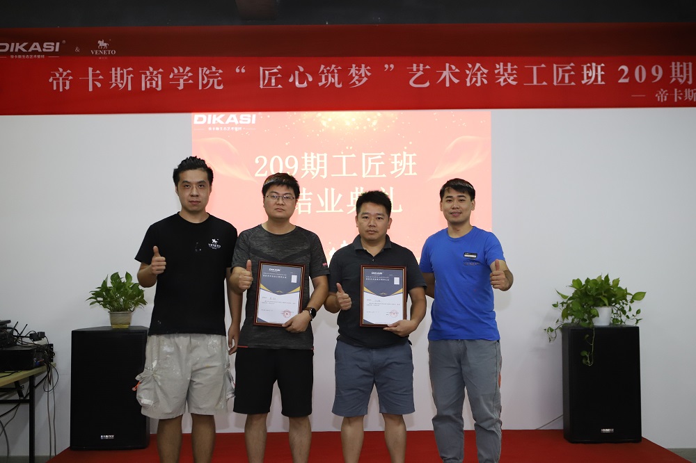 2020年8月22日,帝卡斯商學院藝術塗裝專題209期工匠班在廣東帝卡斯新材料科技有限公司內圓滿結業!